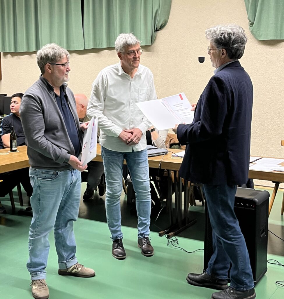 Zu Beginn überreichte Hans Fürst (stellv. Vorsitzender des Sportkreises Darmstadt-Dieburg e. V.) Axel Thomasberger und Rainer Weber eine Ehrenurkunde des Landessportbundes Hessen e. V. für Ihre ehrenamtliche Tätigkeit im geschäftsführenden Vorstand. Er bedankte sich bei beiden für ihre langjährige Treue und geleistete Arbeit.